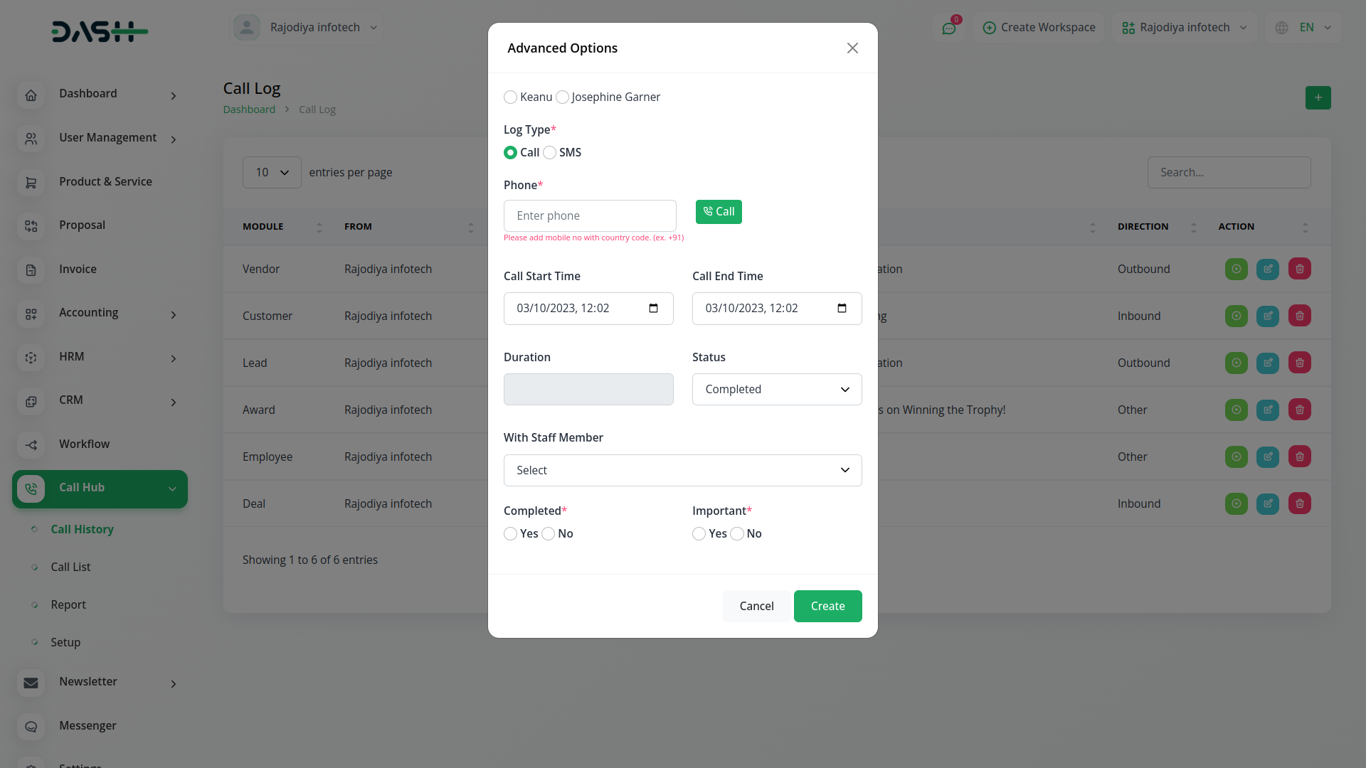 The Call Hub module is a powerful tool designed to streamline communication and enhance tracking for businesses. This module offers a range of functionalities to help companies manage their interactions with employees, customers, and clients effectively.