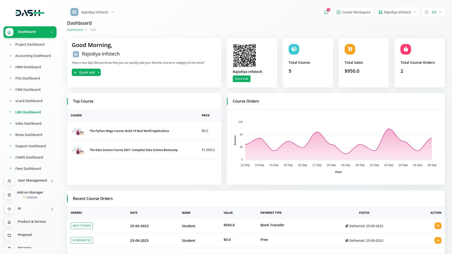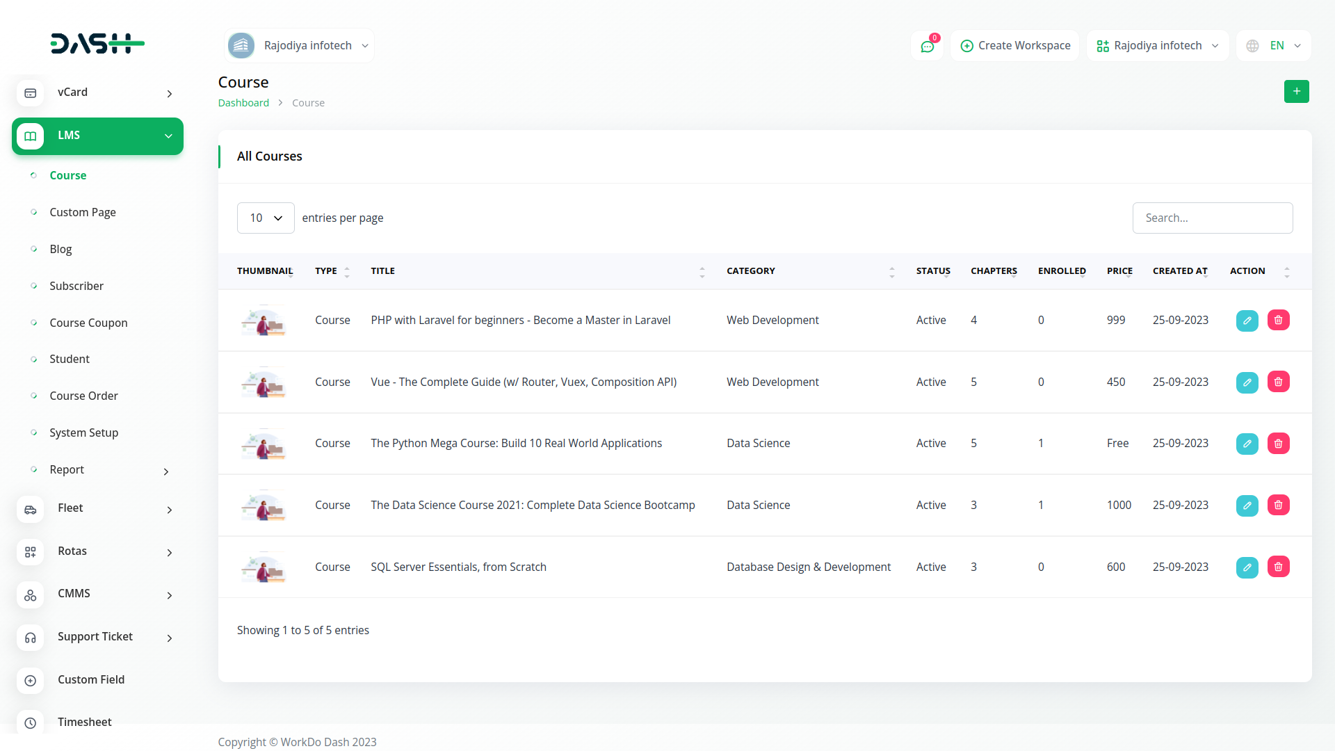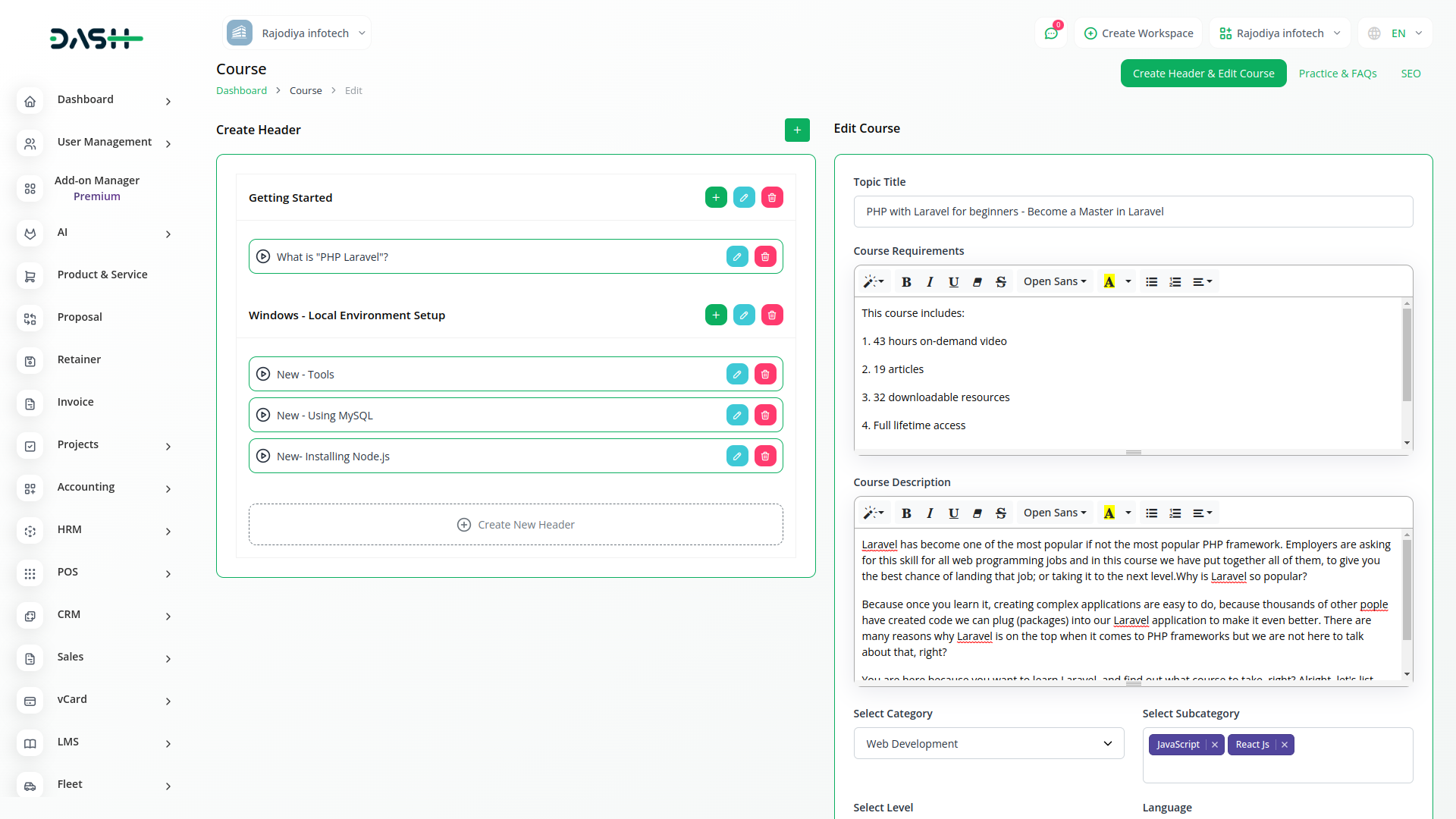Easily organize all your courses by dividing them into distinct course categories. Easily manage all the courses in your store. Keep your inventories in a single tab and manage every aspect of your courses. View course details like names, prices, categories, qualities etc.